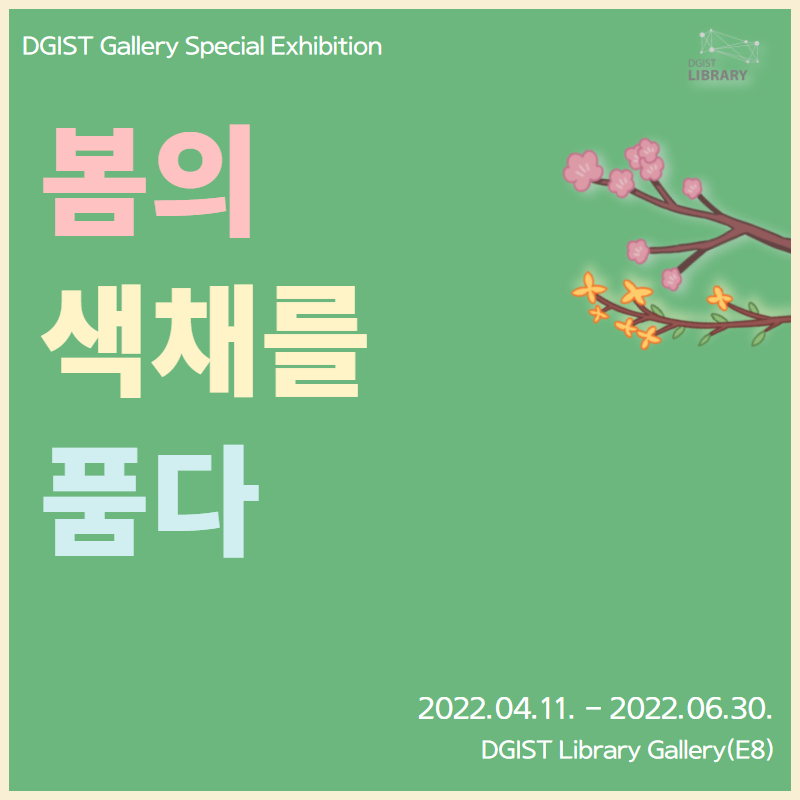 DGIST 학술문화팀이 학술정보관 1층 갤러리(E8 106호, 107호)에서 오는 6월 30일까지 기획전시 ‘봄의 색채를 품다’를 진행한다. 본 전시회는 지난 4월 11일부터 시작되었으며, 학술문화팀은 “계절 ‘봄’에 떠오르는 밝고 선명한 색채를 활용한 미술작품을 통해 새로운 시작을 의미하는 봄처럼 희망찬 앞날을 기대할 수 있는 시간 제공“을 목표로 국립현대미술관 미술은행 소장품과 DGIST 소장품을 준비하였다.