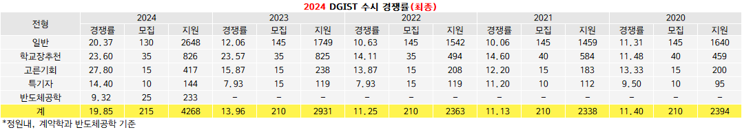 전형방법 변화 및 반도체공학과 신설, DGIST 2024 수시 모집 마감
