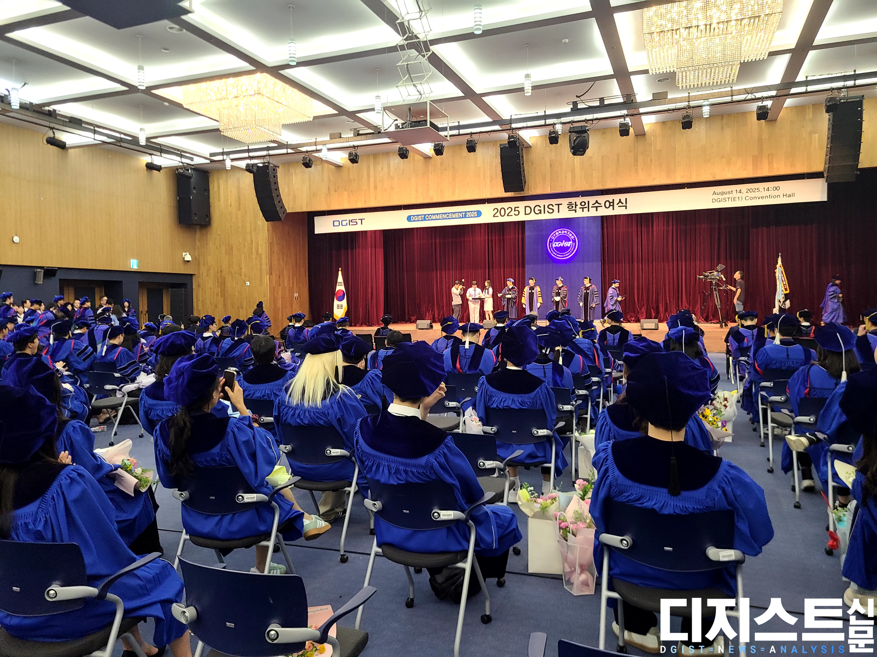 금일 DGIST가 2025년도 후기 학위수여식을 개최했다. 대학본부 컨벤션홀에서 이어진 이번 행사를 통해 ▲박사 55명 ▲석사 47명 ▲학사 52명, 총 154명이 학위를 수여받았다.