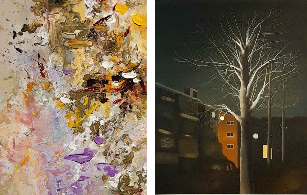 비록 화면을 통해서도 전시회의 작품들을 감상할 수 있지만, 직접 관람하는 것만큼 생생하게 다가오지는 않는다. 화면으로만 보아서는 알 수 없는 그림의 성질이 있다. 바로 질감이다. 모든 그림은 작가의 성향에 따라, 작품의 주제에 따라 서로 다른 질감을 가지고 있다. 똑같이 평면에 그려낸 그림이라도 입체감이 느껴질 정도로 두텁게 물감을 쌓아 올린 작품도 있는 반면(<백일몽>, 한희원 작가) 얇게 칠한 물감 아래 캔버스의 질감까지 고스란히 느껴지는 작품도 있다(<겨울나무>, 김지윤 작가).