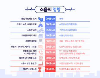 세계보건기구에 따르면 40dB(A) 이상의 소음은 수면에 영향을 미친다. 50dB(A) 이상부터는 호흡 및 맥박수가 증가하며 이로 인해 불쾌감을 호소하는 사람들이 크게 늘어난다. 60dB(A) 이상의 소음에 지속적으로 노출될 경우 신체적 건강에도 이상을 초래할 수 있다. 따라서 65dB(A) 이하로 법적 소음 기준이 지켜지더라도, 생활 속 불편이 완전히 해소되기는 어려울 것으로 보인다.