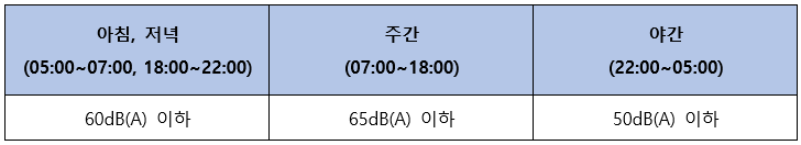 공사장의 법적 생활 소음 규제 기준은 다음과 같다.
