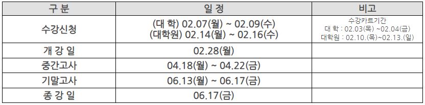 개강 후 4주(2/28~3/25)간 전면 비대면 수업을 실시한다. 이후 3월 28일부터 대학원은 대면강의, 대학은 ▲실험 ▲실습 ▲수강 인원이 40명 이하인 과목을 대면 강의로 진행한다.