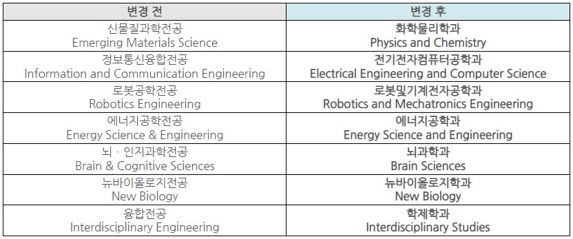 2022년 2월 28일 이전에 입학한 재적생의 경우, 학위 수여 및 증명서 출력 시 변경 전 전공명칭을 선택할 수 있다.