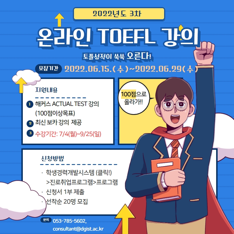 [상담·경력개발센터] 2022년도 제3차 온라인 TOEFL 강의 지원 프로그램 안내 (6/29 마감)