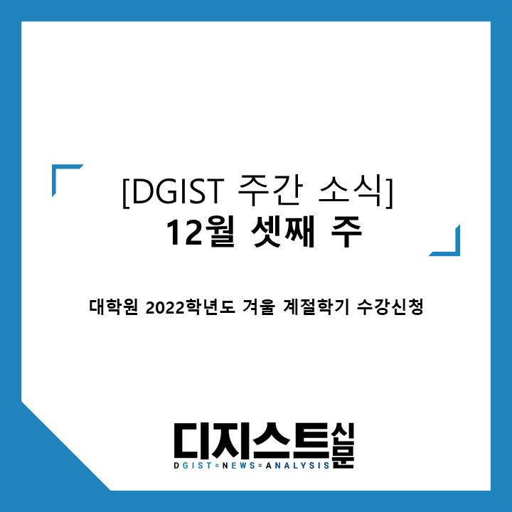| [DGIST 주간 소식] 2022년 12월 첫째 주: 대학 기말고사, 대학 및 대학원 강의평가 (0) | 2022.12.04 |