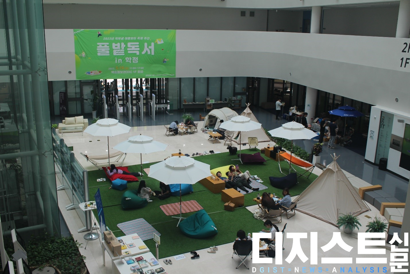 지난 5월 18일부터 26일까지 DGIST의 학부생 여름맞이 축제가 진행됐다. ▲밴드동아리 RGB의 단독 공연 “희락” ▲학생팀 · 학술문화팀 · 총학생회의 “풀밭 독서 IN 학정” ▲연극 동아리 .AVI의 “THE HATEFUL 8” ▲보컬동아리 보이스피싱 단독 공연 “노을빛으로 흐르는 시간” ▲총학생회의 “시간의 영화제” ▲DGIST 응원단 D.ONE의 응원제 “승리를 위하여” ▲총학생회의 “제2회 달동제” ▲DGIST 동아리 연합회의 “동아리 연합공연”이 총 9일 동안 선보여졌다. DNA가 여름맞이 축제 기간 중 있었던 낭만의 순간을 카메라에 담았다. DGIST 구성원 사이 화합이 피어오르는 계기가 되었기를 기대한다.