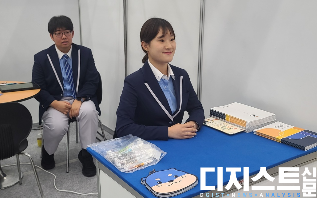 DGIST도 이번 행사에 나섰다. DGIST 입학팀과 학생 홍보대사 D’light(이하 D’light)는 전국 54개 대학 사이에서 본교 홍보 및 참가자 상담 부스를 운영하며 큰 관심을 끌었다. 이날 부스를 이끈 D’light 최연지(`23) 대사와 김휘주(`23) 대사는 “행사 첫날 홍보 자료가 전체 조기 소진될 만큼 지대한 관심을 받았다. 더 이상 드릴 홍보 자료가 없어 학생 상담을 진행하는 데 사용한 마지막 자료까지 배부해야 하는 상황에 처해, 한편으로는 곤란하면서도 동시에 뿌듯했다.”고 밝혔다. 상담받을 참가자를 나서서 모으지 않았는데도 많은 분들이 관심 가지는 모습에 학교의 높은 위상을 다시 한번 느낄 수 있었다는 이야기 또한 덧붙였다.