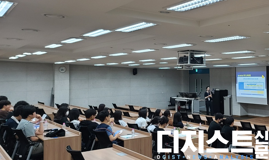 DGIST 입학팀은 지난 1일, 반도체공학과 신설에 따른 첫 반도체공학과 OPEN Campus를 진행했다. 본 행사는 반도체공학과 학과장을 역임하는 강홍기 교수의 특강으로 시작되어, D’light 홍보대사의 주도하에 ▲FAB 투어 ▲캠퍼스 투어로 이어졌다. 반도체공학과를 지망하는 영남 지역 고등학생과 학부모가 행사에 참여했으며, 이에 따라 기존 캠퍼스 투어 행사보다 반도체공학과 진로 분야 중심의 내용으로 이루어졌다. 참여 학생들은 FAB 시설 내 클린룸 내부까지 방문하며 반도체 연구에 대한 다양한 설명을 들었다.