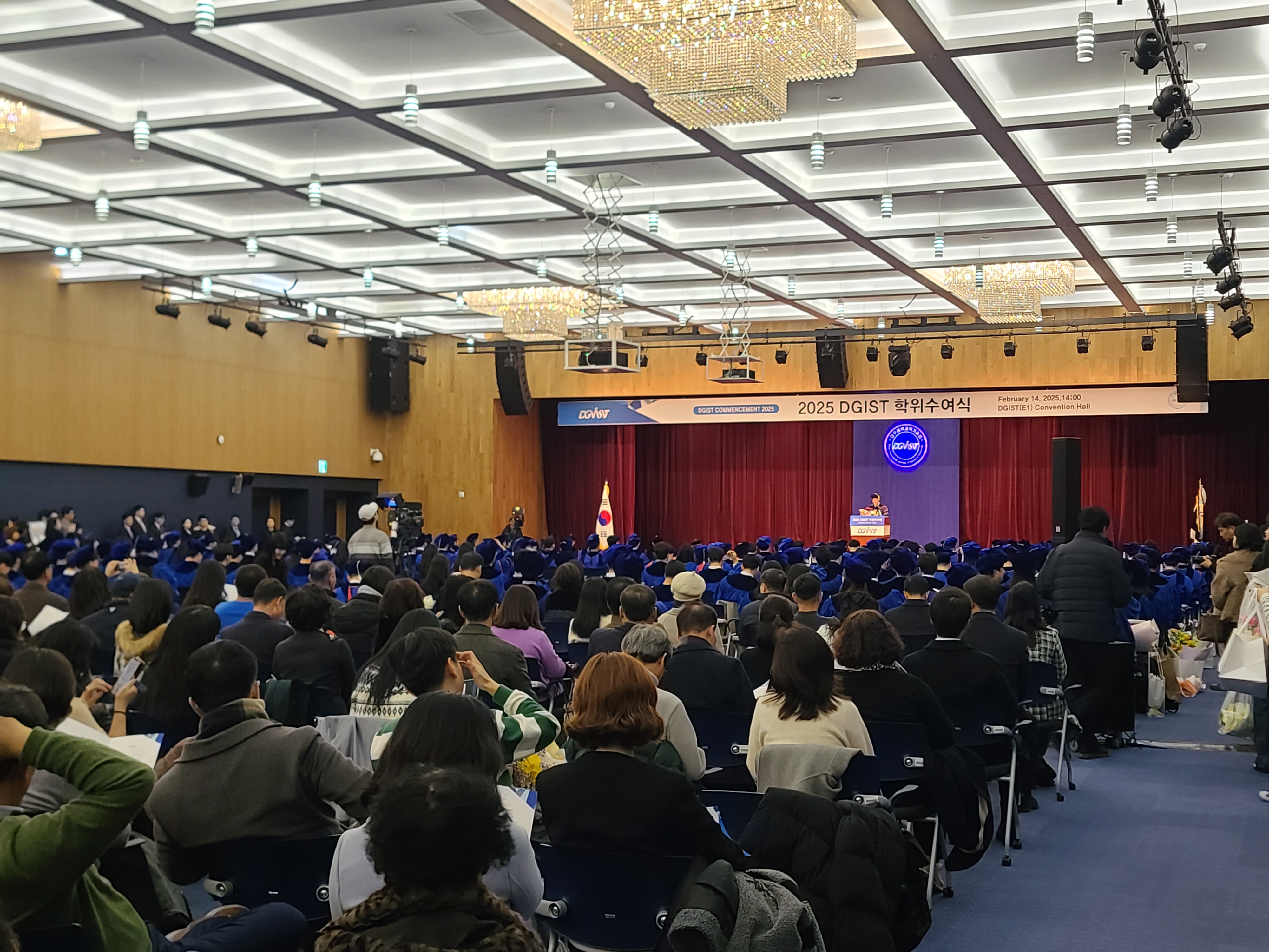 2025년도 DGIST 전기 학위수여식이 금일(14일) 대학본부 컨벤션홀에서 진행됐다. 이번 행사를 통해 ▲박사 60명 ▲석사 72명 ▲학사 128명, 총 260명의 학생이 학위를 수여받았다. 이번 행사는 ▲학사 행렬 ▲학사 보고 ▲졸업식사 ▲학위 수여 ▲졸업생 대표 인사 ▲졸업 선서 ▲원가 제창 ▲축하공연 등 순서로 이어졌다. 바이브컴퍼니 부사장을 거친 송길영 작가가 졸업 축사를 맡았다.